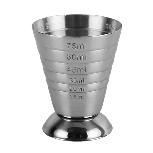Measures: 0.5oz, 1oz, 1.5oz, 2oz, 2.5oz & 15ml, 20ml, 30ml, 45ml, 60ml 75ml & 1Tbsp, 2Tbsp, 3Tbsp, 4Tbsp, 5Tbsp